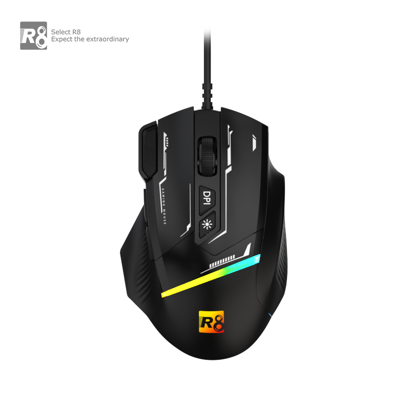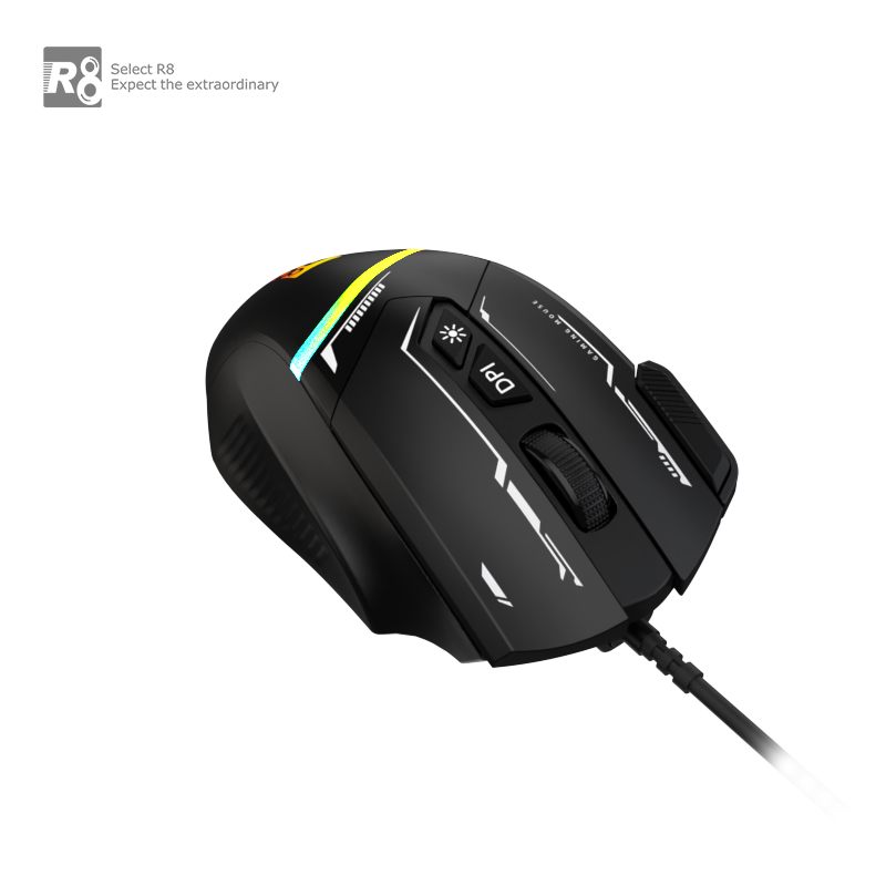 With a high-precision optical sensor and adjustable DPI up to 7200, you can instantly adapt sensitivity for different play styles—low DPI for accurate targeting and high DPI for fast, dynamic movements. The R8 8D button layout gives you extra programmable controls for macros, shortcuts, and in-game commands, making it ideal for FPS, MOBA, and RPG gaming.
